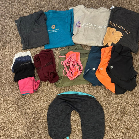 My travel "pillow" has been a game changer for me. When I fly, this is my workaround for having to check a bag on longer trips. I will usually do laundry once while I am gone for trips longer than 5 days. I carry a quart size Ziploc bag with hygiene items and this “neck pillow” with all of my clothes. I will use this trip to North Carolina as an example.